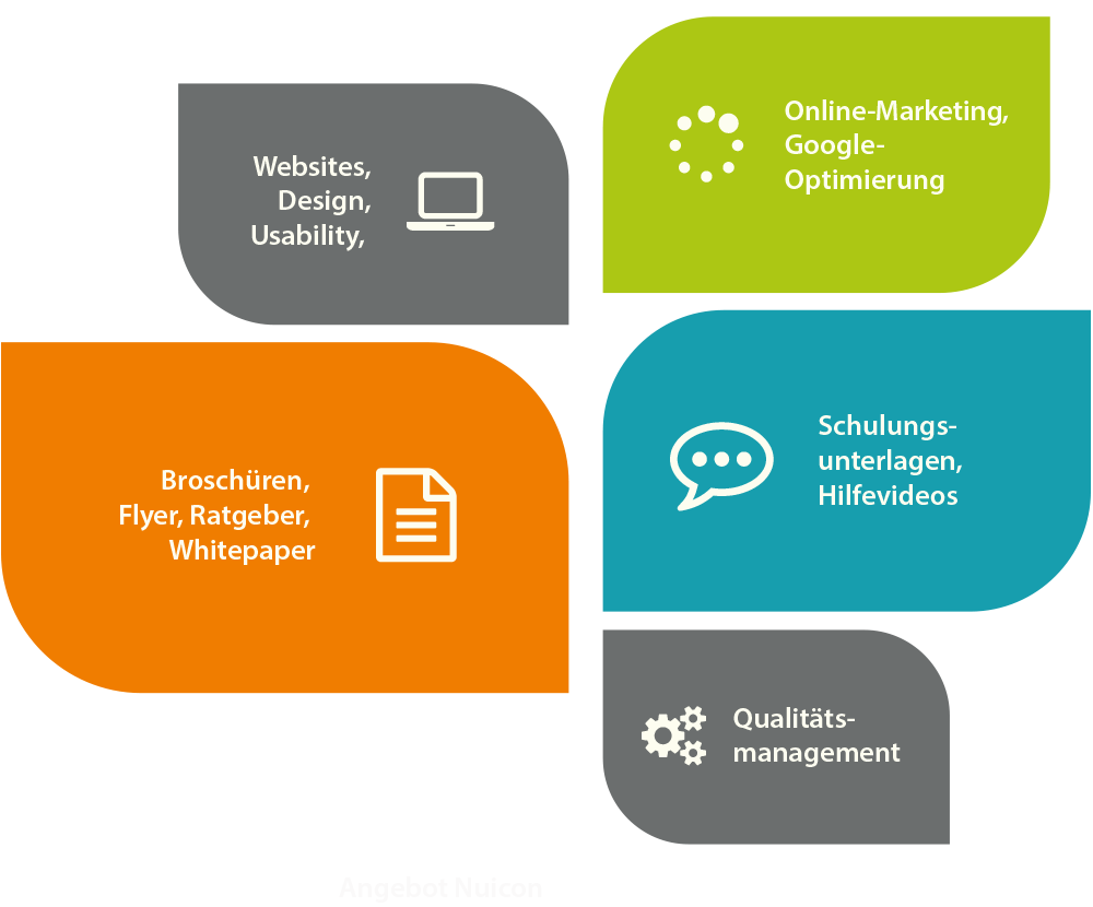 Mit Broschüren, Flyern und Whitepaper informieren Sie Ihre potenziellen Kunden und schaffen durch ein professionelles Auftreten Vertrauen. Nuicon unterstützt Sie hierfür mit Konzept, Text, Grafik und Layout.